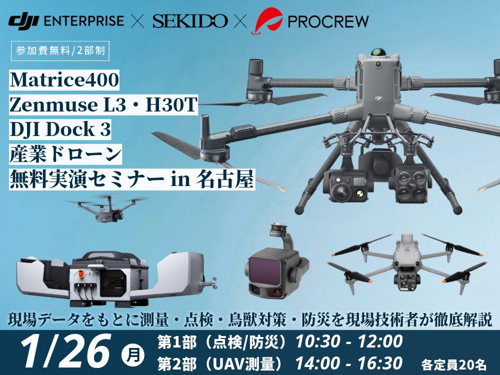 このセミナーでは、ドローン高所点検/UAV測量業務を安全かつ効率的に行うための、機体の性能についてや事例紹介、ドローンの実物展示、デモフライト動画解説を行います。