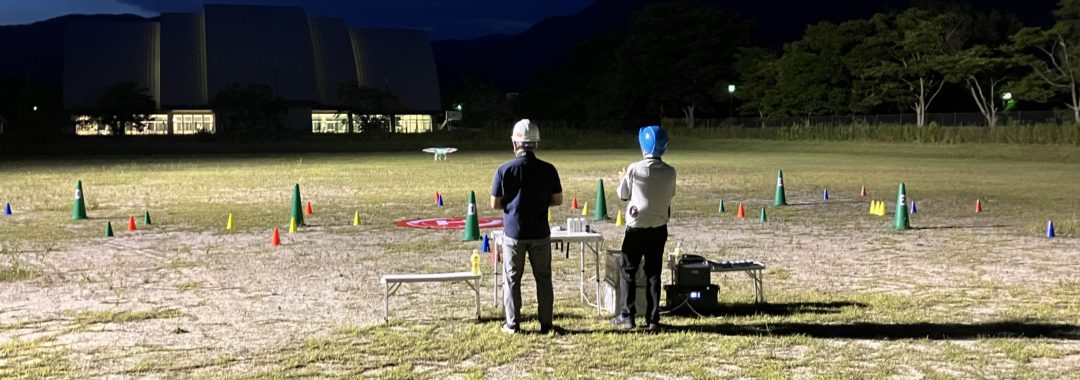 日中に比べ機体が見にくいこと、周りの状況も分かりにくいのでしっかりとした飛行技術が必要です。