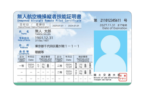 | 空撮 花子 | 24090090000 | 飛行実績 〇 時間以上 |