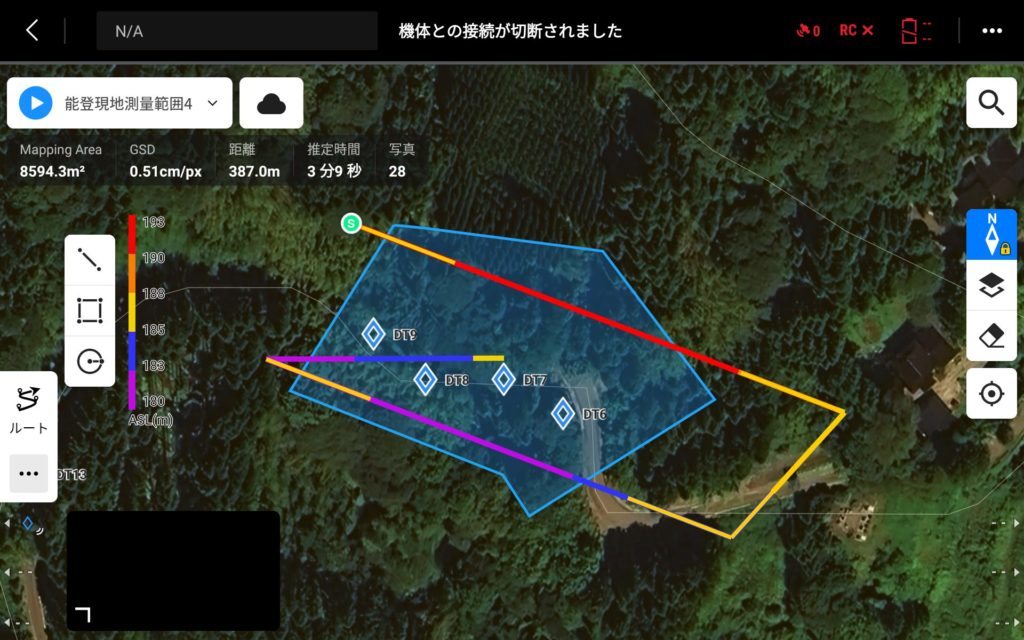 対空標識は各計測エリアにそれぞれ4つ設置し、調整および検証を行いました。